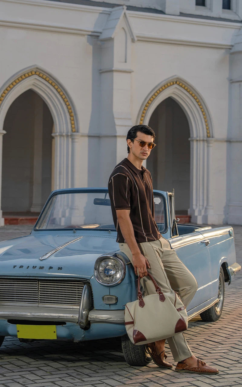 JACQUARD TEXTURED ZIP POLO SHIRT KHAKI